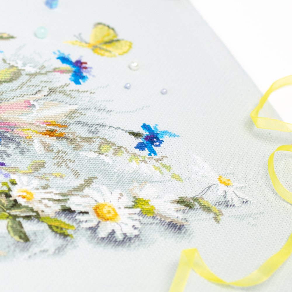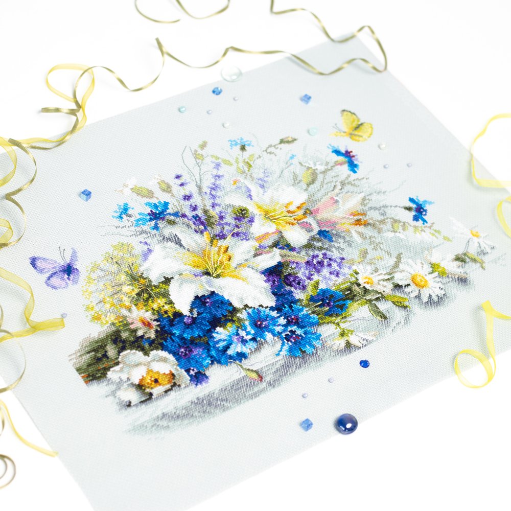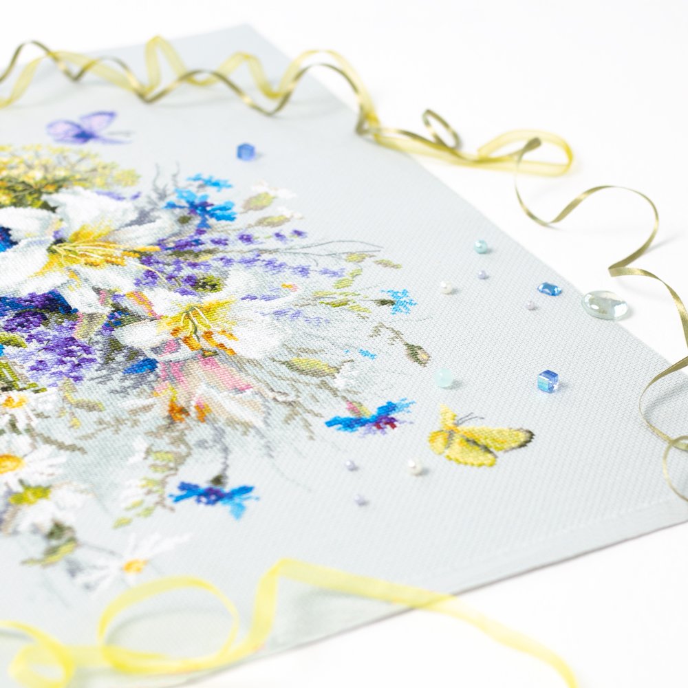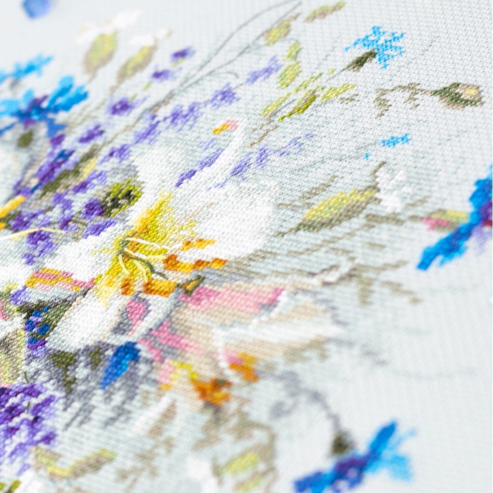 Kit contains: fabric Zweigart Aida 14ct. light gray, DMC mouline threads 41 colours, needle, chart. Finished size: 40x25cm/15.75x9.84". Frame is not included