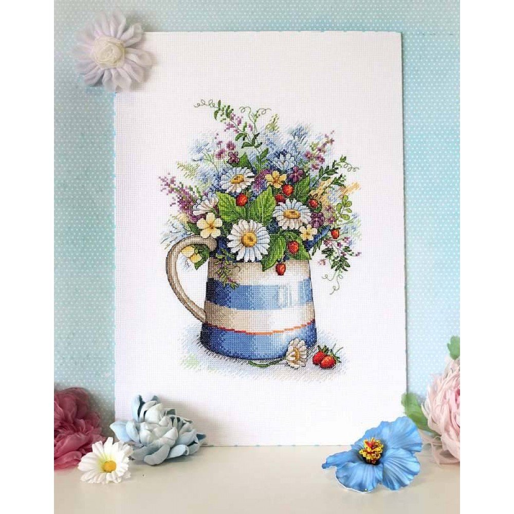 Kit contains: fabric Zweigart Linda 27ct. white, DMC mouline threads 34 colours, needle, chart. Finished size: 20x28cm/7.87x11". Frame is not included
