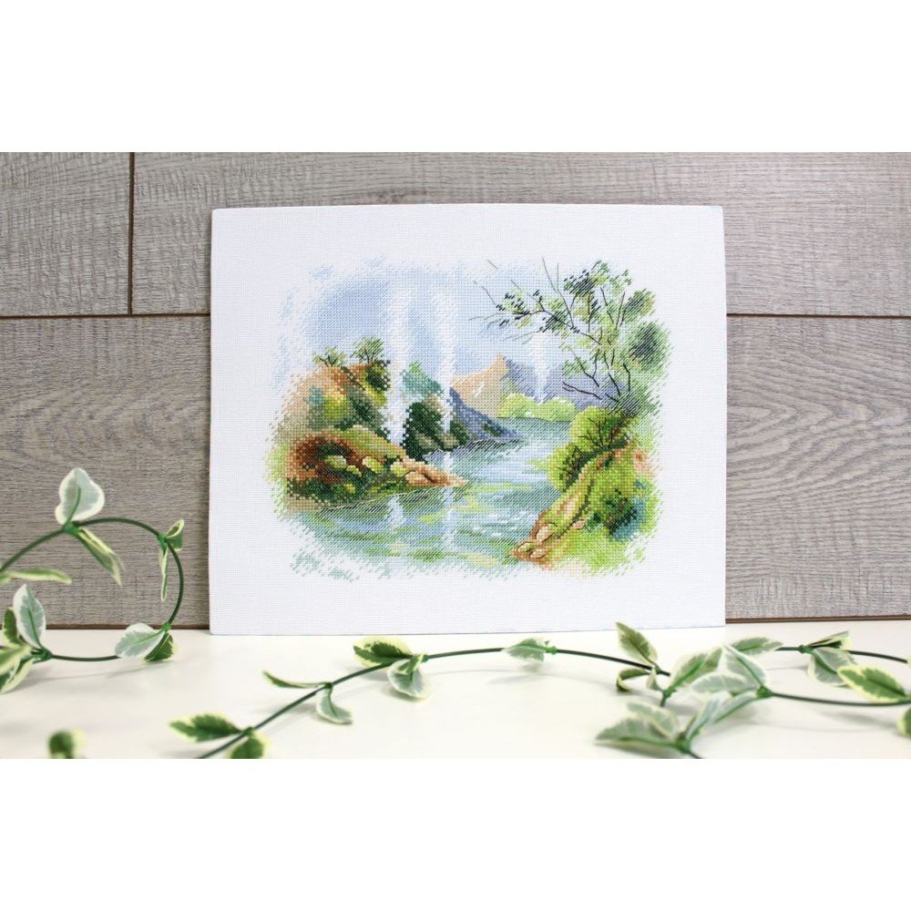 Kit contains: fabric Zweigart Linda 27ct. white, DMC mouline threads 26 colours, needle, chart. Finished size: 25x20cm/9.84x7.87". Frame is not included