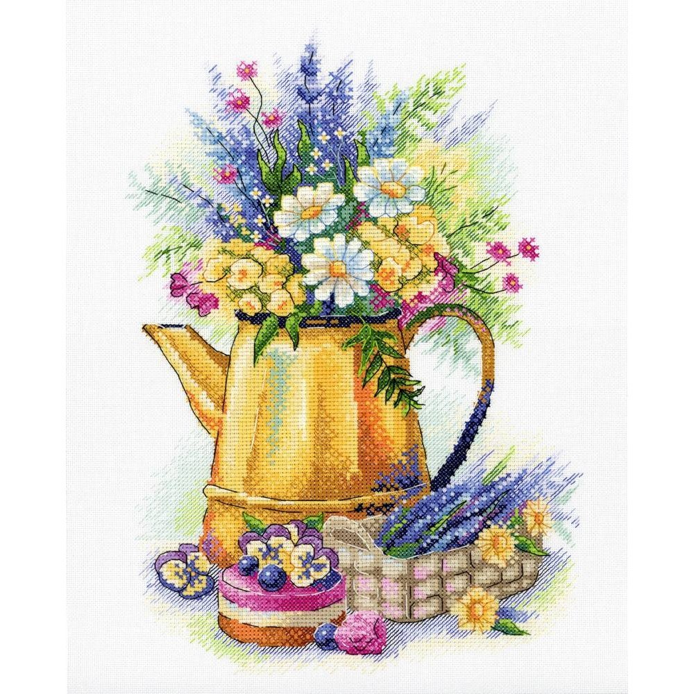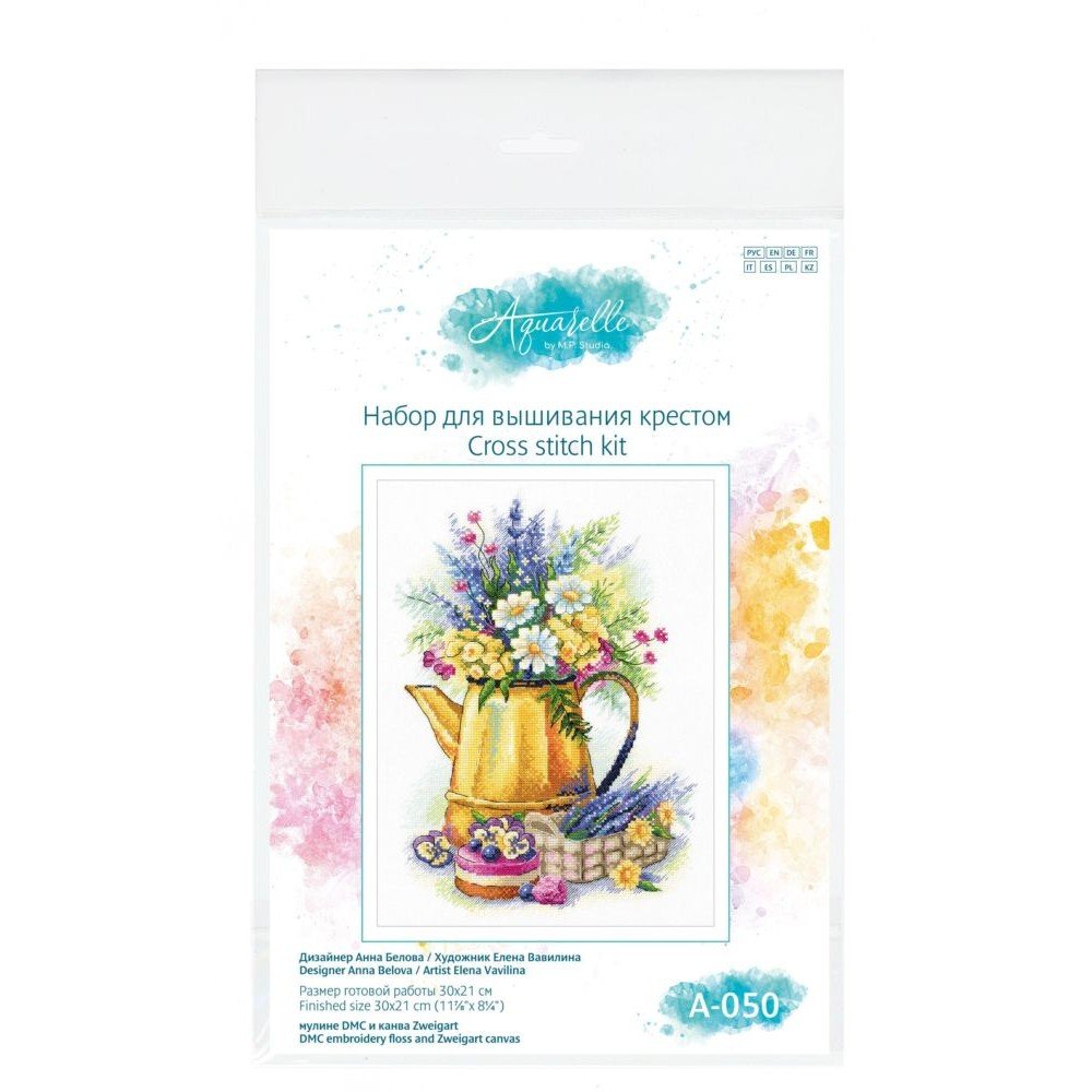 Kit contains: fabric Zweigart Linda 27ct. white, DMC mouline threads 34 colours, needle, chart. Finished size: 21x30cm/8.27x11.81". Frame is not included