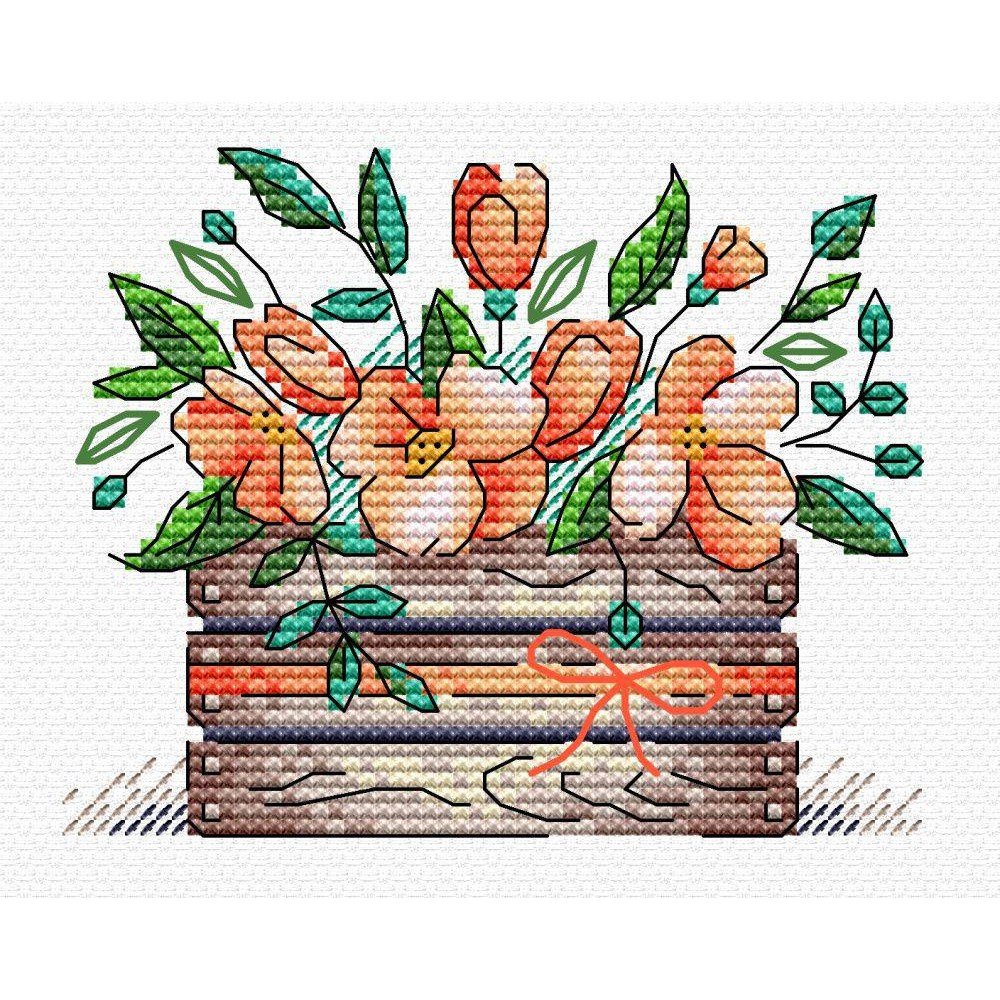 Kit contains: fabric Aida canvas 14ct. white, mouline threads (100% cotton) 13 colours, needle, chart. Finished size: 10x8cm/3.94x3.15". Frame is not included
