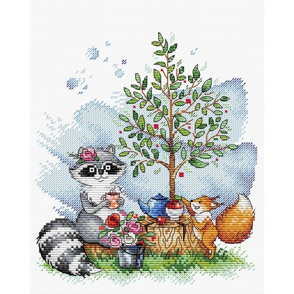 Kit contains: fabric Aida canvas 14ct. white, mouline threads (100% cotton) 26 colours, needle, chart. Finished size: 18x22cm/7.09x8.66". Frame is not included