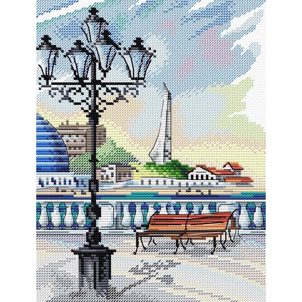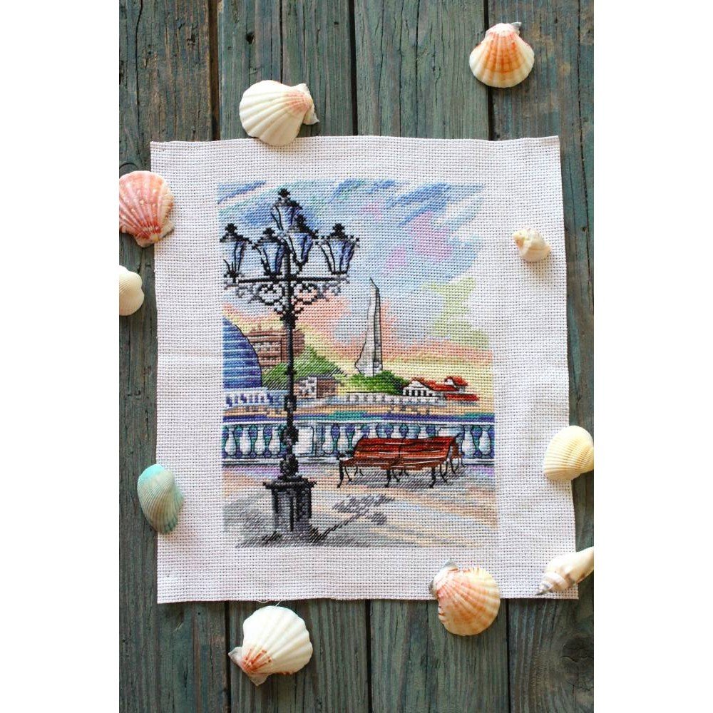 Kit contains: fabric Aida canvas 14ct. white, mouline threads (100% cotton) 26 colours, needle, chart. Finished size: 16x22cm/6.3x8.66". Frame is not included
