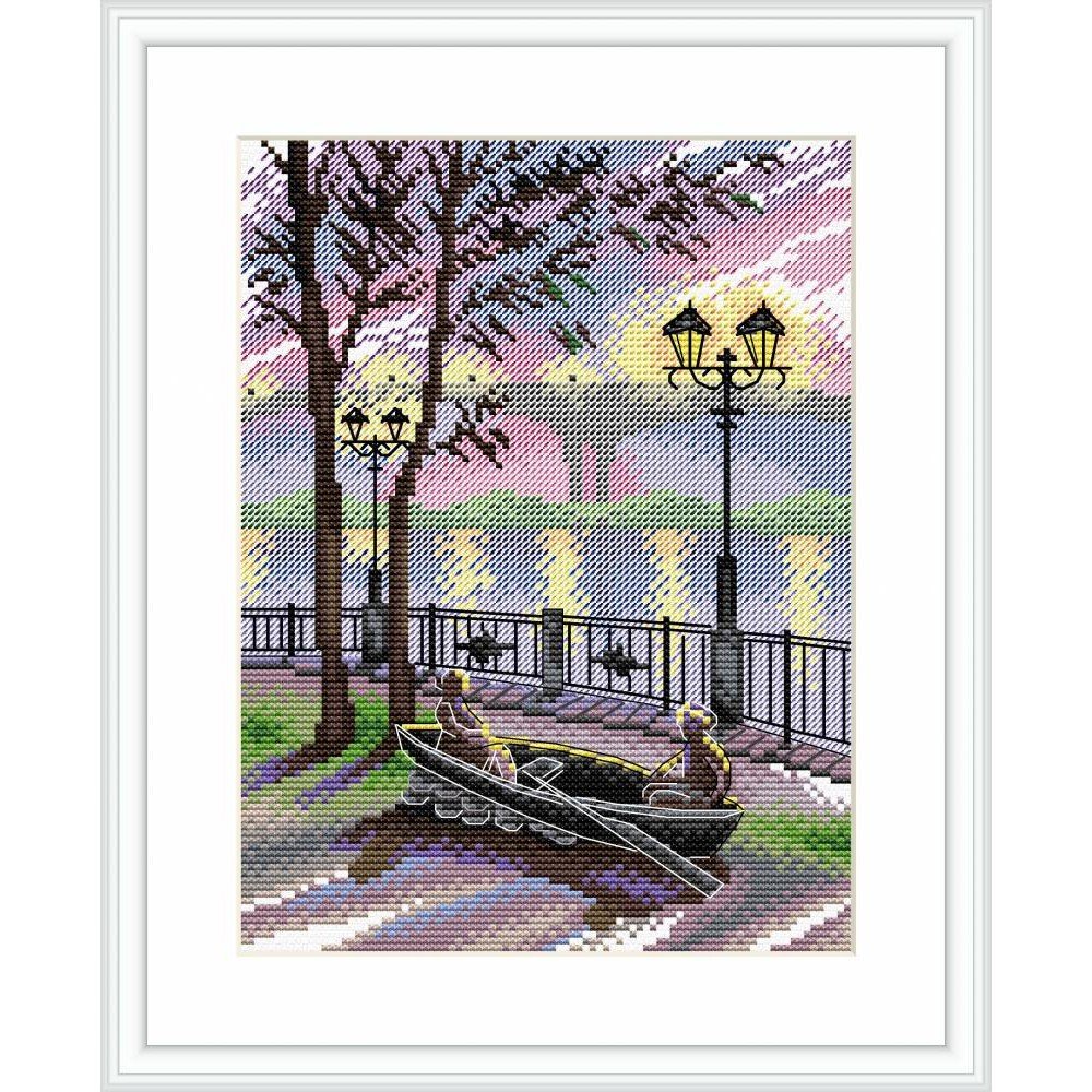 Kit contains: fabric Aida canvas 14ct. white, mouline threads (100% cotton) 22 colours, needle, chart. Finished size: 17x22cm/6.69x8.66". Frame is not included