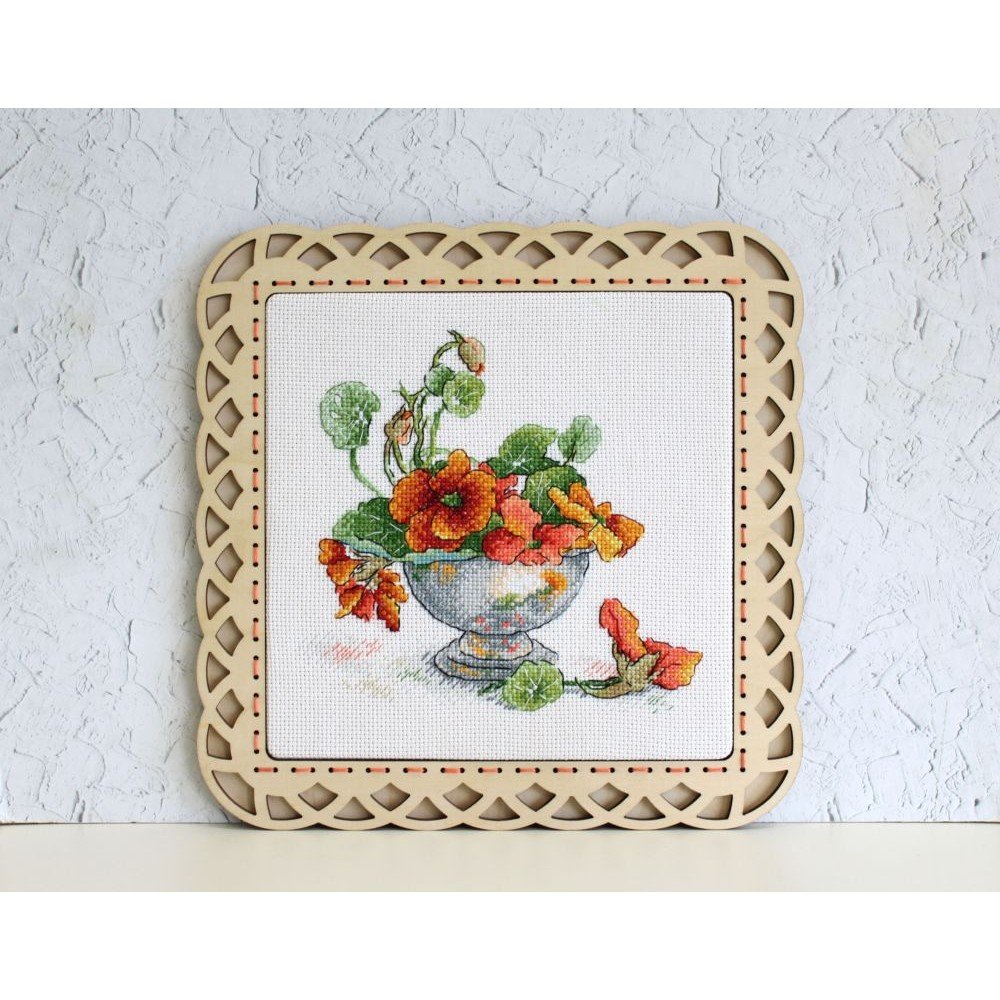 Kit contains: fabric Aida canvas 14ct. white, mouline threads (100% cotton) 21 colours, needle, chart. Finished size: 19x18cm/7.48x7.09". Frame is not included
