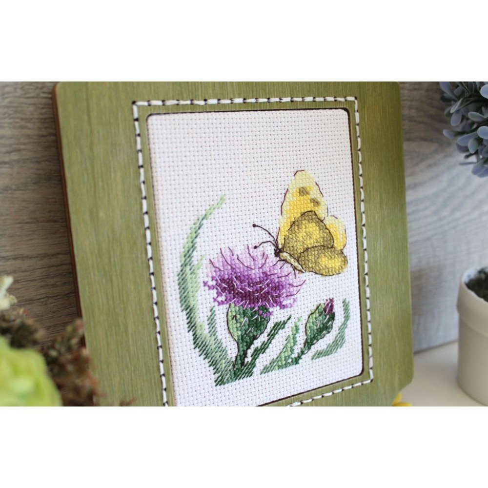 Kit contains: fabric Aida canvas 14ct. white, mouline threads (100% cotton) 11 colours, needle, chart. Finished size: 11x11cm/4.33x4.33". Frame is not included