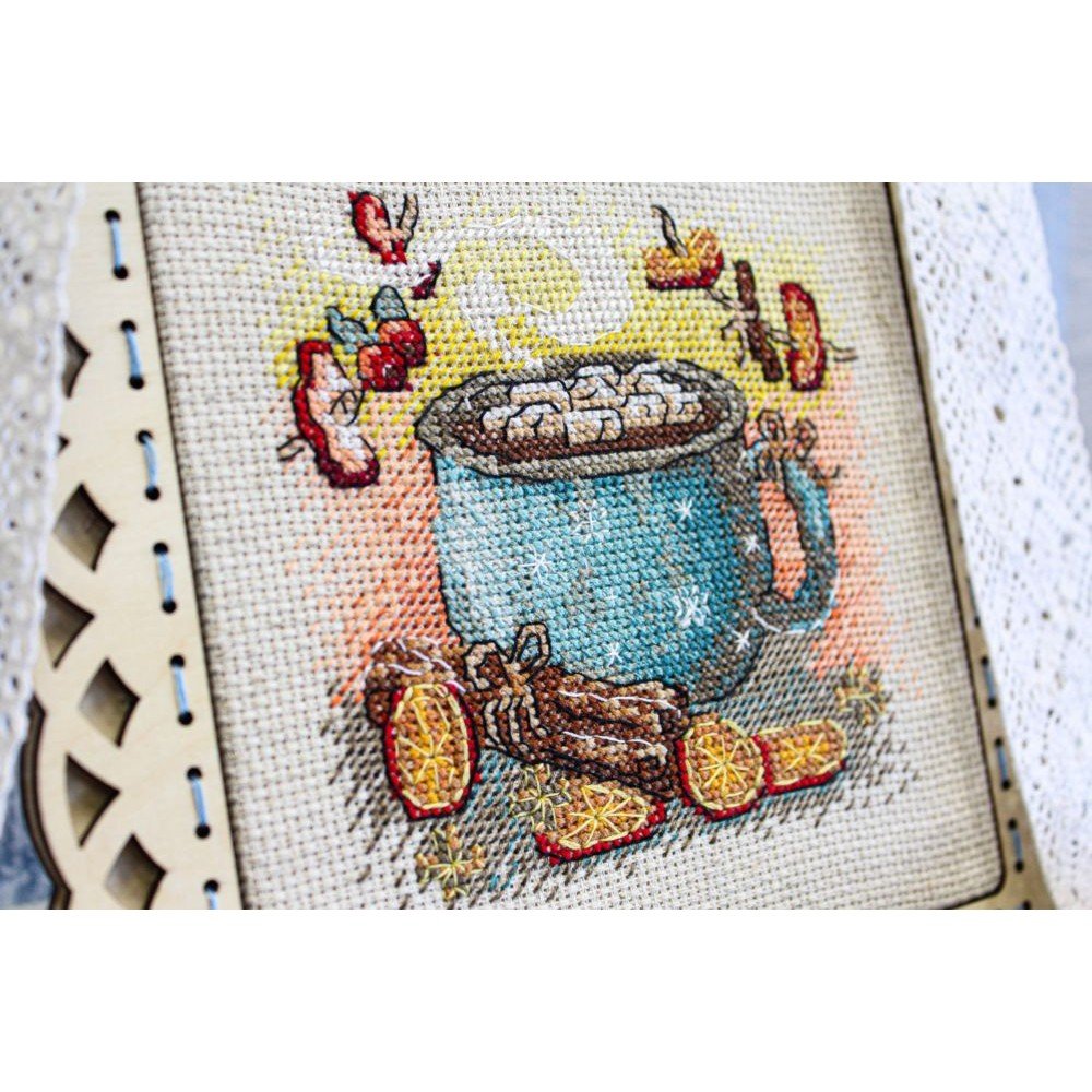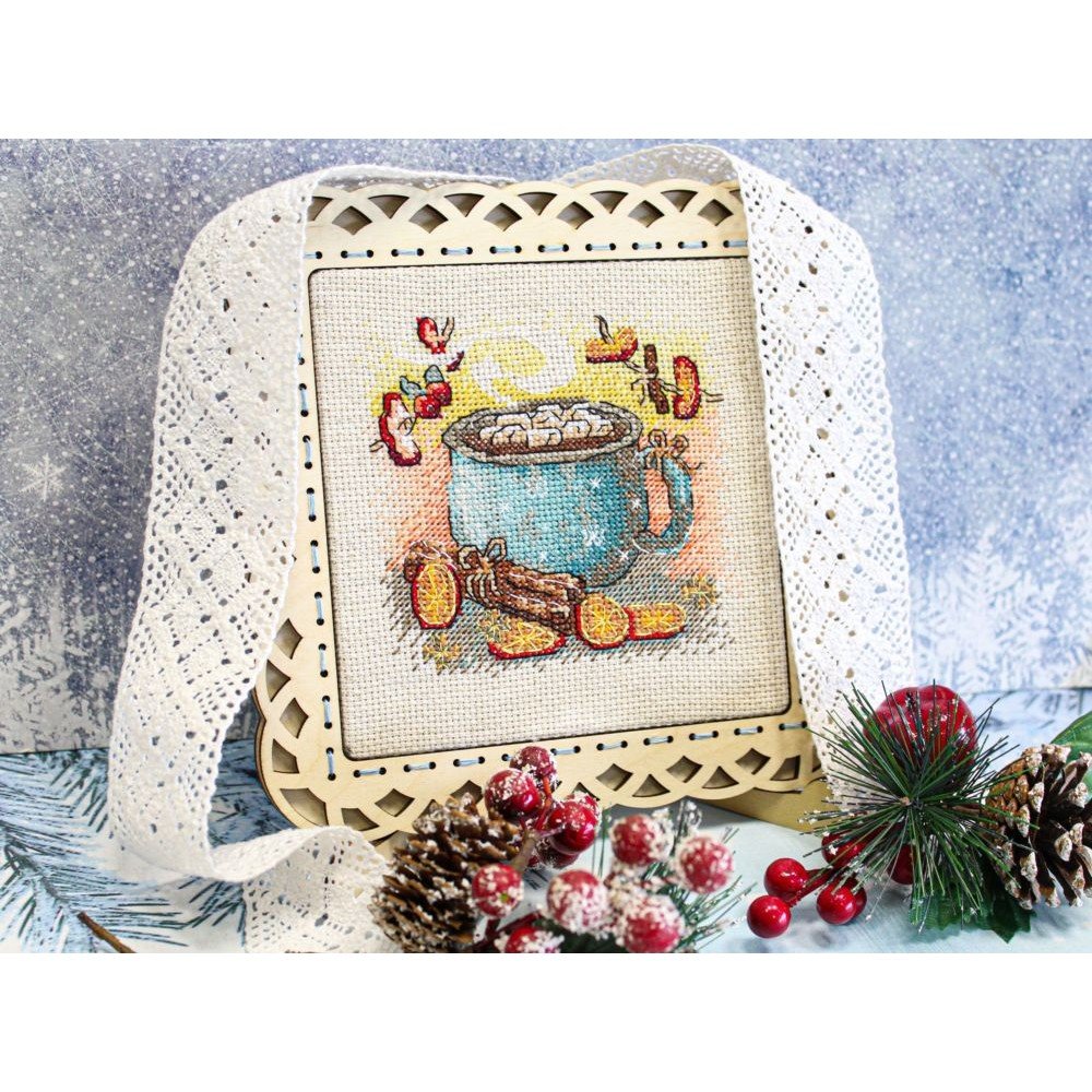 Kit contains: fabric Aida canvas 14ct. linen, mouline threads (100% cotton) 20 colours, needle, chart. Finished size: 12x12cm/4.72x4.72". Frame is not included