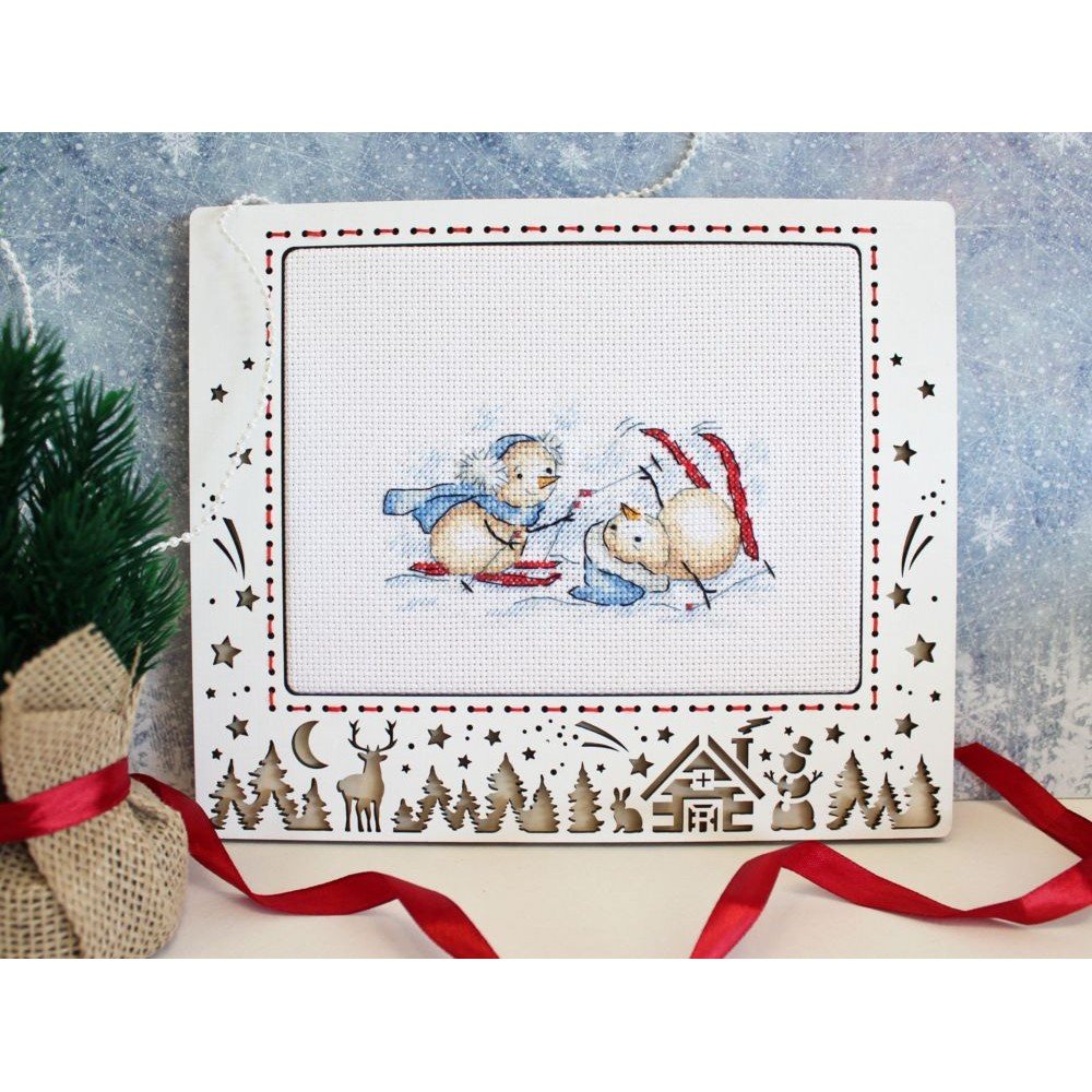 Kit contains: fabric Aida canvas 14ct. white, mouline threads (100% cotton) 13 colours, needle, chart. Finished size: 13x8cm/5.12x3.15". Frame is not included