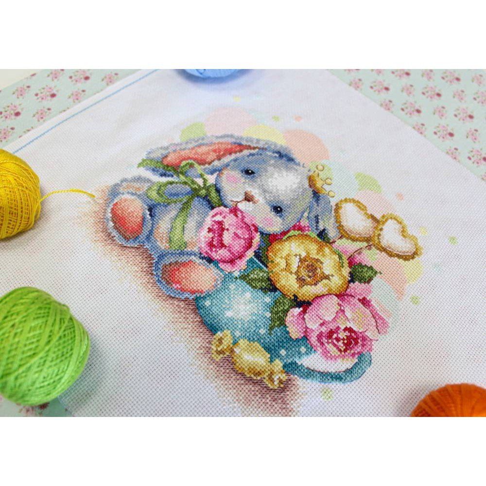 Kit contains: fabric Aida canvas 16ct. white, mouline Gamma 33 colours, needle, chart. Finished size: 20x19сm / 7.87x7.48". Frame is not included