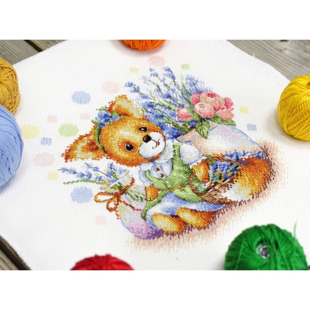 Kit contains: fabric Aida canvas 16ct. white, Gamma mouline threads 28 colours, needle, chart. Finished size: 18x19cm/7.09x7.48". Frame is not included