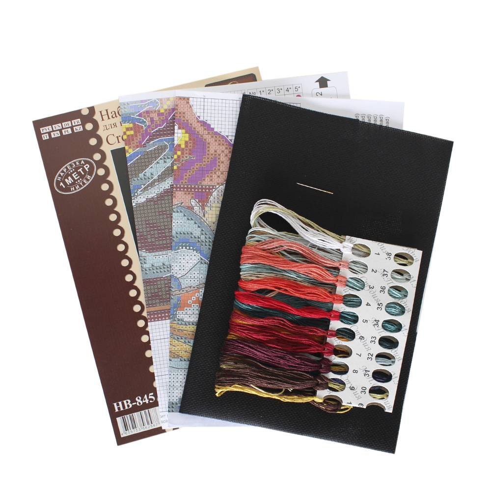 Kit contains: fabric Aida canvas 16ct. black, Gamma mouline threads 28 colours, needle, chart. Finished size: 15x27cm/5.91x10.63". Frame is not included