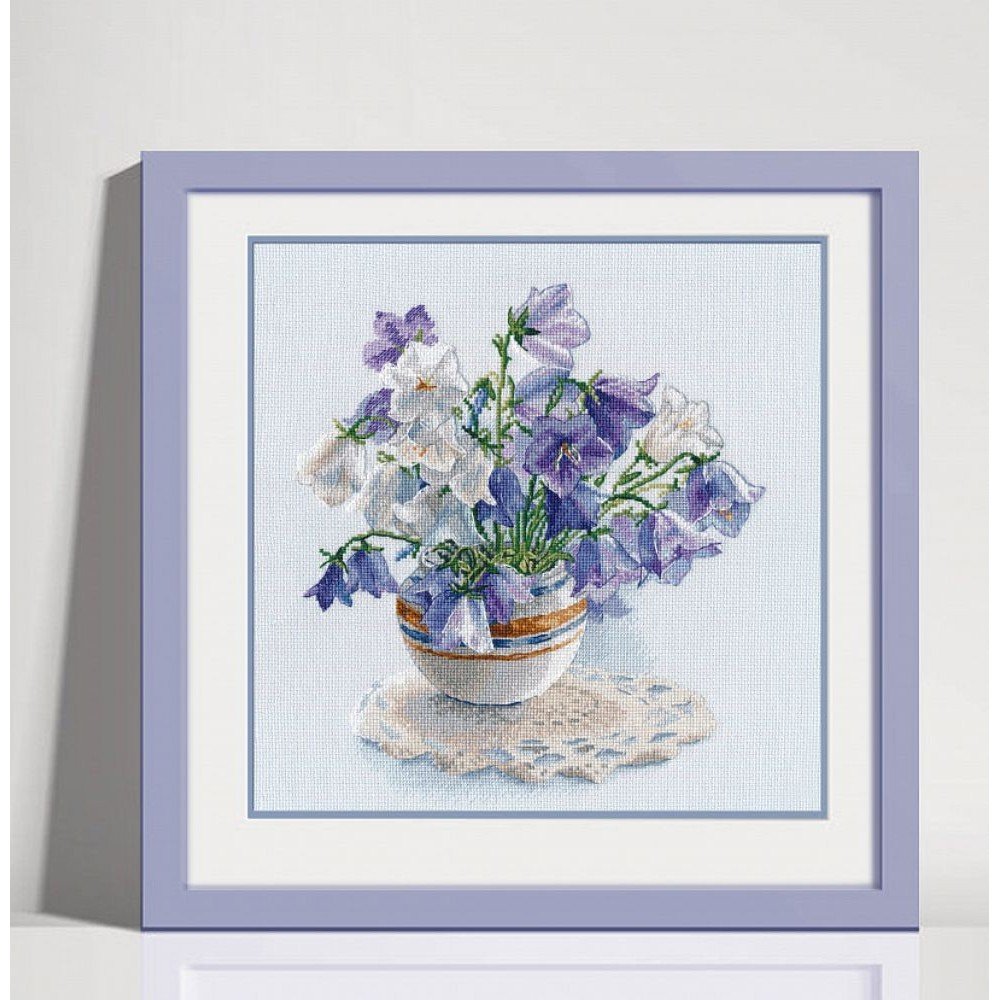 Kit contains: fabric Zweigart Aida 16ct. light blue, DMC mouline threads 29 colours, needle, chart. Finished size: 23x26cm/9.06x10.24". Frame is not included