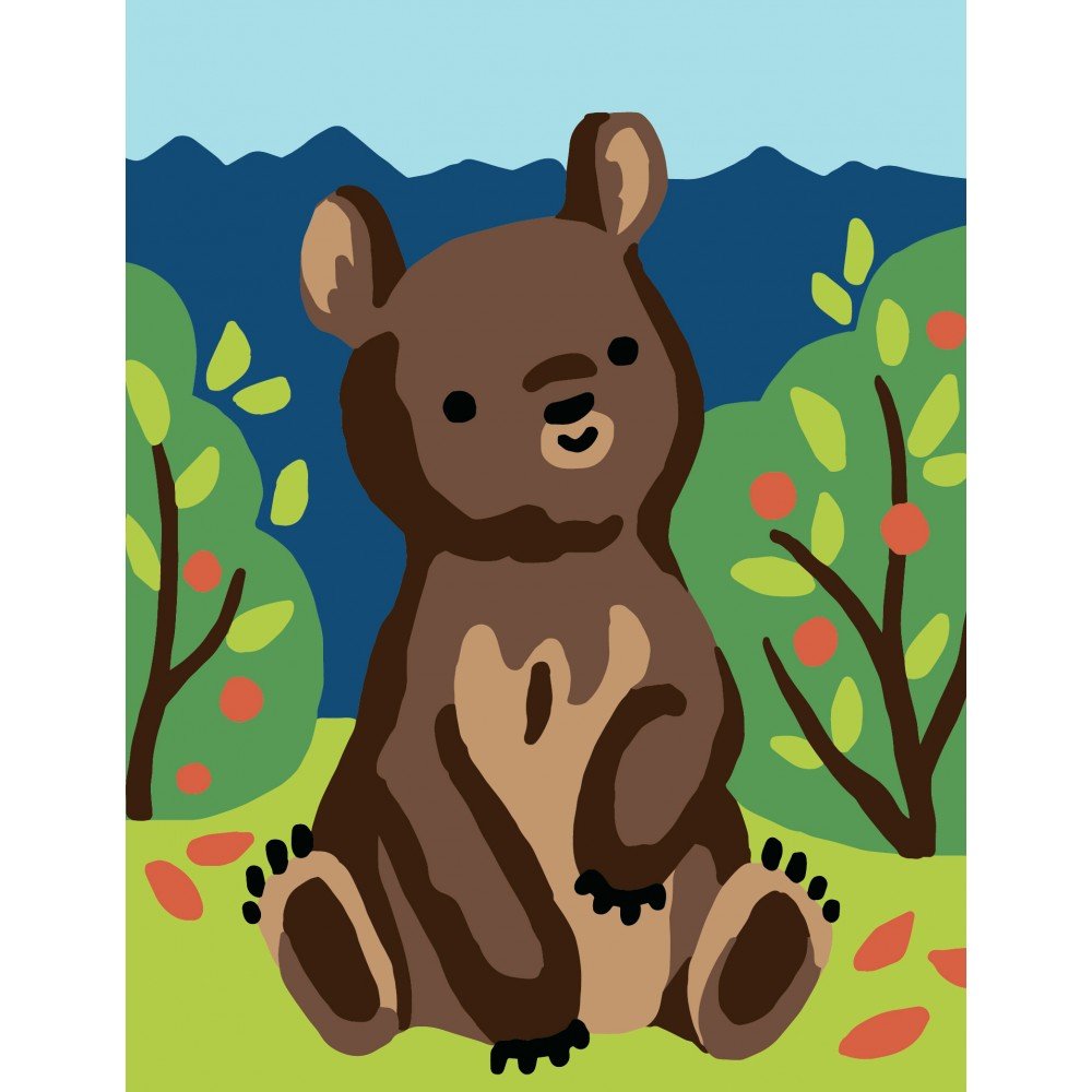 Printed tapestry canvas "Bear", fabric: white Zweigart Stramin (100% cotton), 44 cross stitches per 10 cm (11 count). Finished design size: 14 x 18 cm/5.51 x 7.09", canvas measurement: 20 x 25 cm/7.87 x 9.84". Threads are not included! Embroidered in cross-stitch, half-cross or tapestry. Threads suitable: wool, thick acrylic yarn, cotton mouline (e.g., DMC) - best for 4-strand cross-stitch or 6-strand half-cross. Printed color numbers from the DMC color chart for selecting any threads or beads. The canvas, resembling a rigid, finely meshed grid, allows for excellent work without hoop and chart.