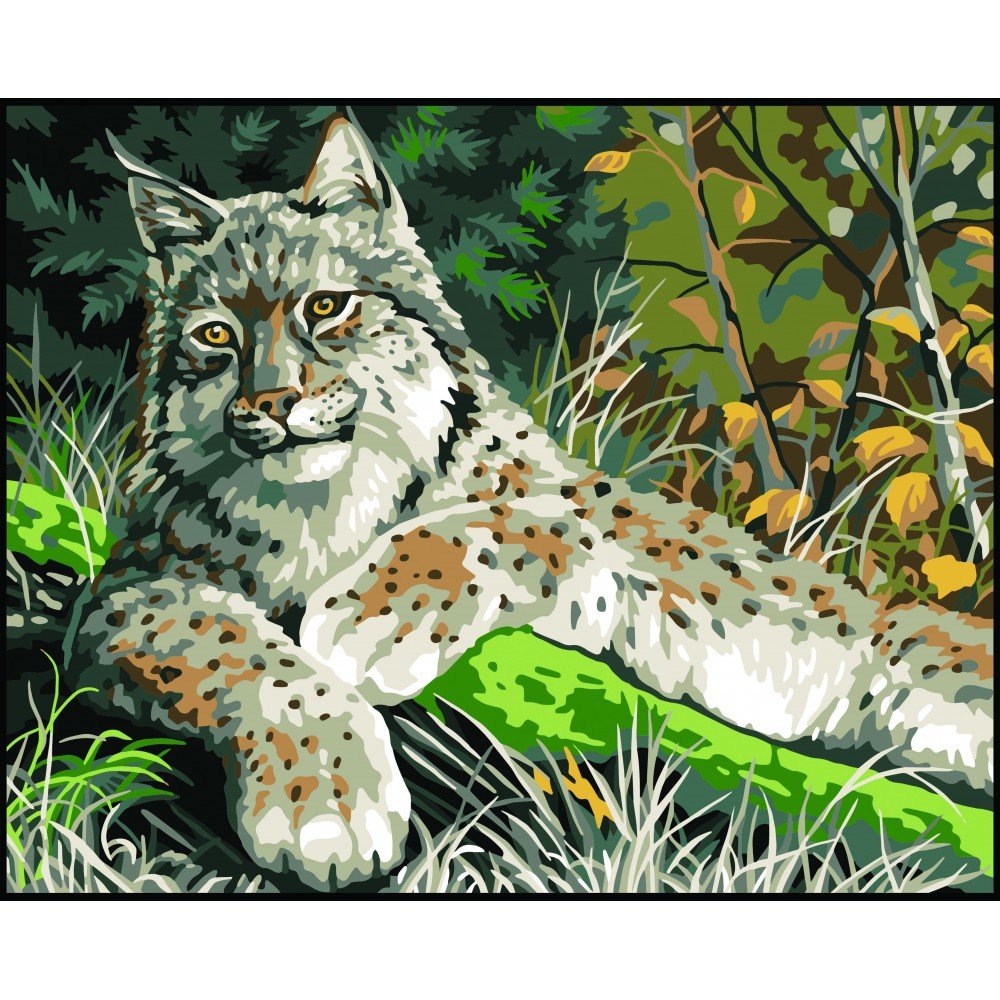 Printed tapestry canvas "Lynx", fabric: brown Zweigart Stramin (100% cotton), 40 cross stitches per 10 cm (10 count). Finished design size: 50 x 40 cm/19.69 x 15.75", canvas measurement: 60 x 50 cm/23.62 x 19.69". Threads are not included! Embroidered in cross-stitch, half-cross or tapestry. Threads suitable: wool, thick acrylic yarn, cotton mouline (e.g., DMC) - best for 4-strand cross-stitch or 6-strand half-cross. Printed color numbers from the DMC color chart for selecting any threads or beads. The canvas, resembling a rigid, finely meshed grid, allows for excellent work without hoop and chart.