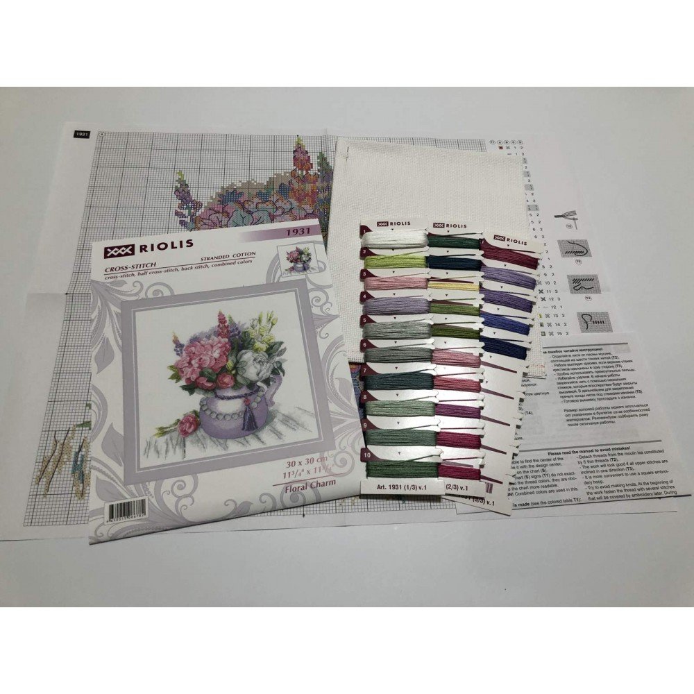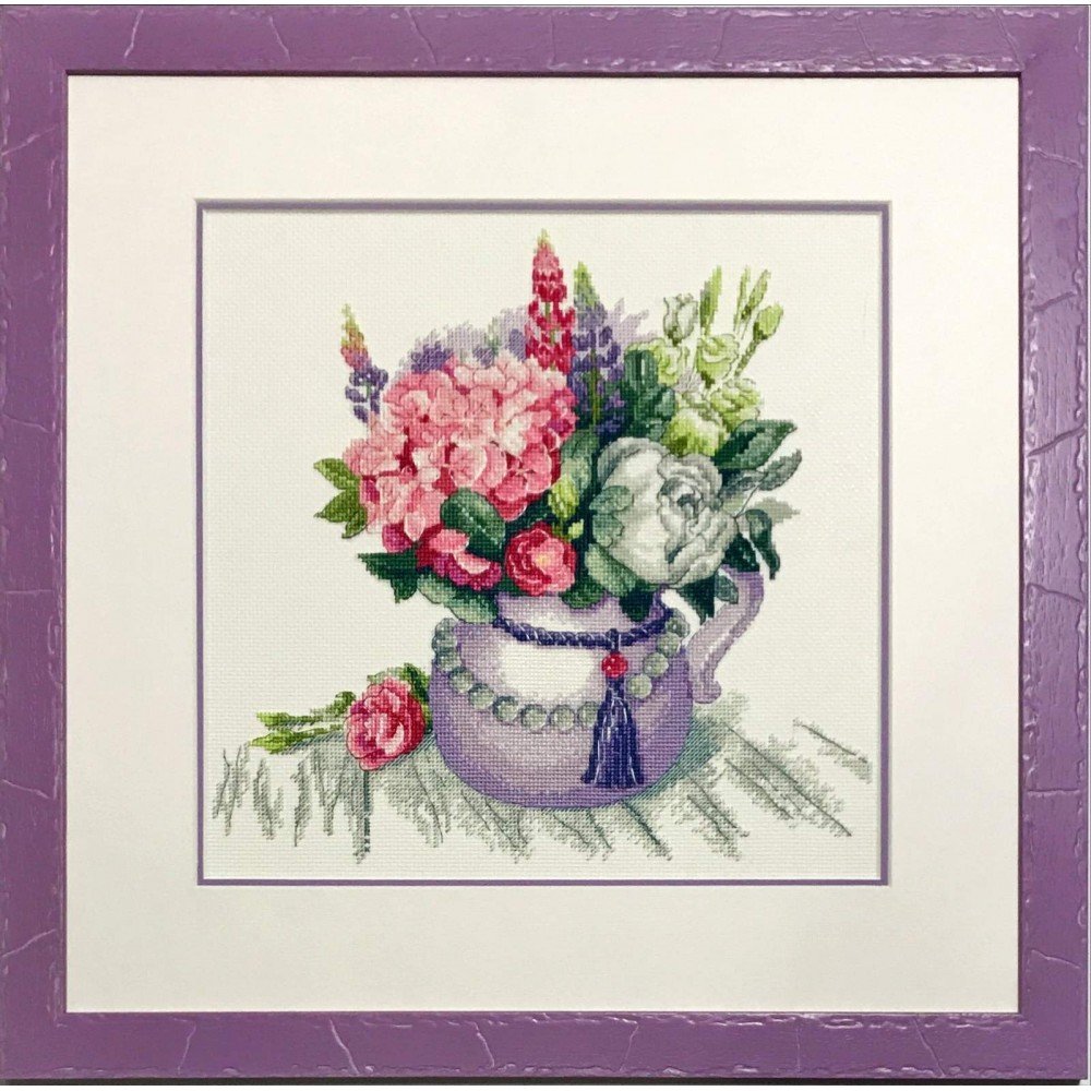 Kit contains: fabric Zweigart Aida 14ct. white, Anchor mouline threads 25 colours, needle, chart. Finished size: 11¾x11¾"/30x30cm. Frame is not included
