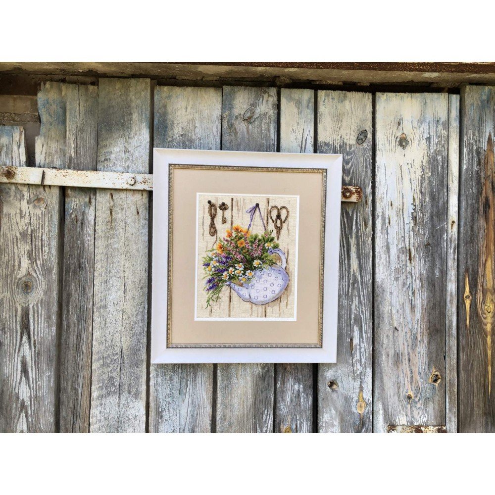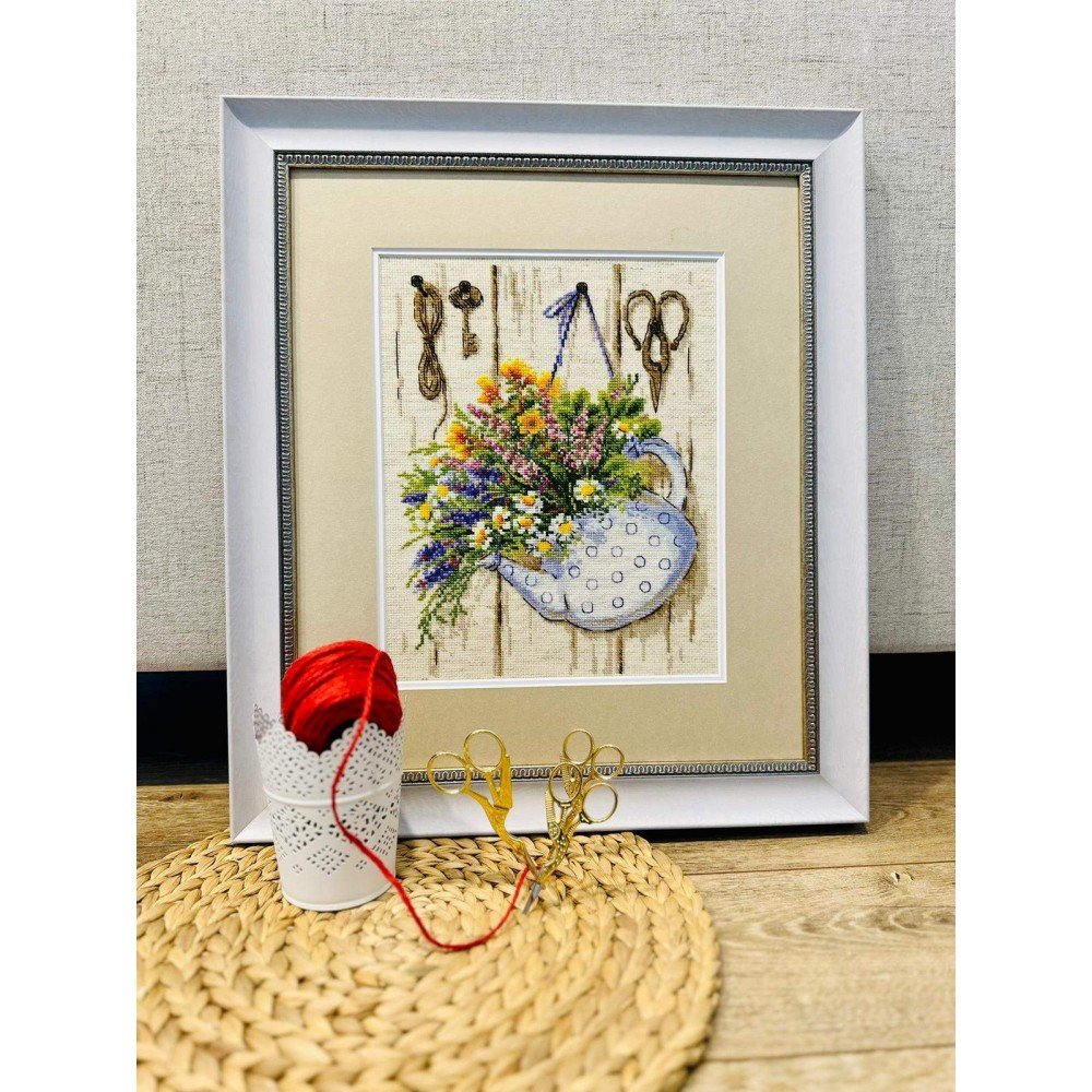Kit contains: fabric Zweigart Aida 14ct. flaxen, acrylic & wool threads 23 colours, needle, chart. Finished size: 9½x11¾"/24x30cm. Frame is not included