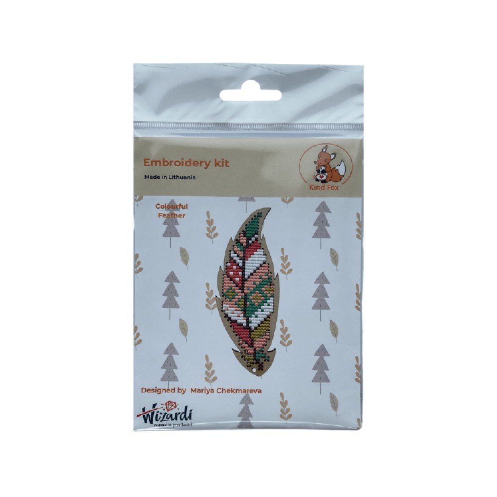Cross stitch kit on wood contains: wooden blank, felt, DMC mouline threads 6 colours, needle, chart. Finished size: 4.5x11cm/1.77x4.33"