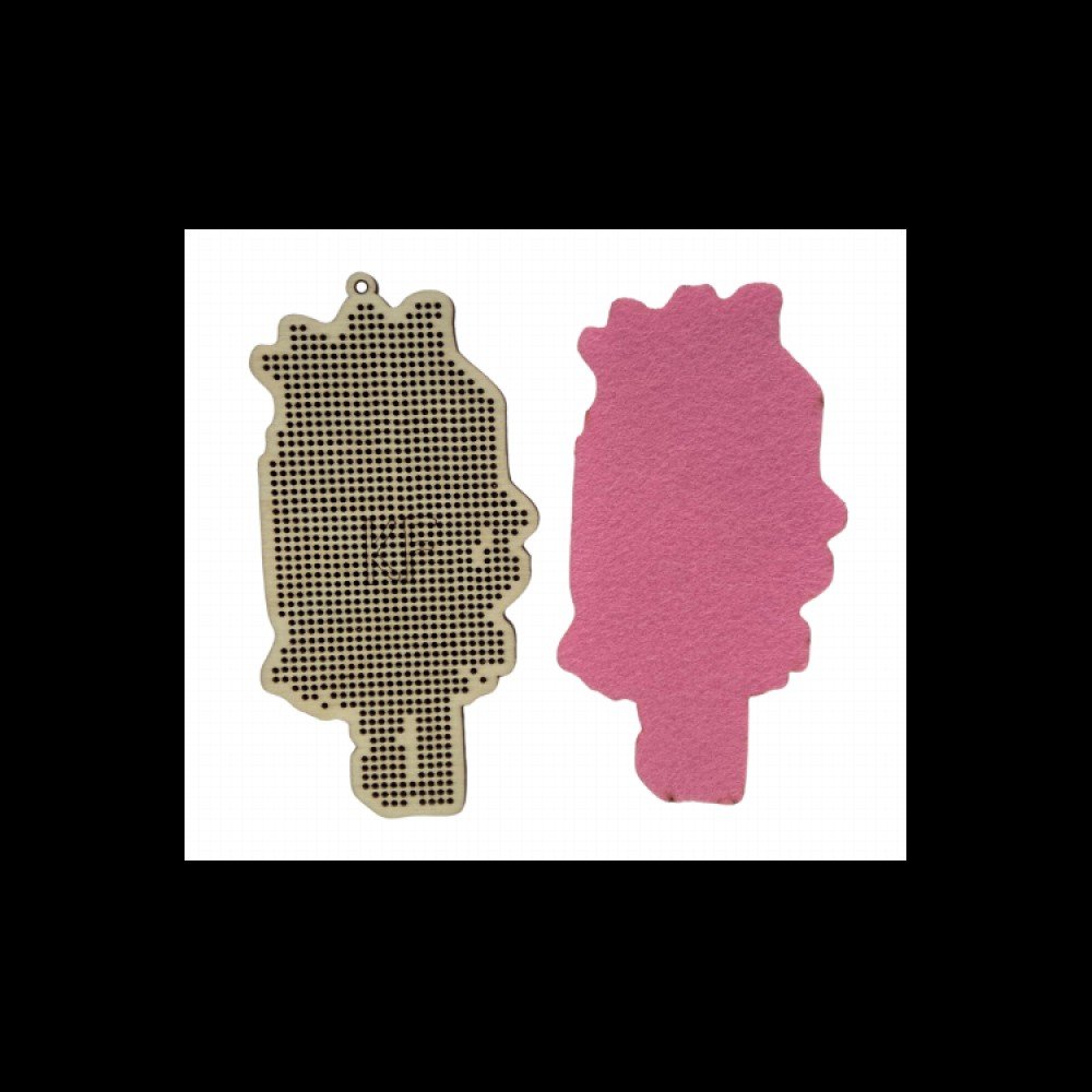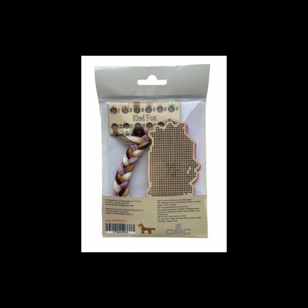 Cross stitch kit on wood contains: wooden blank, felt, DMC mouline threads 12 colours, needle, chart. Finished size: 6х11.5cm/2.36x4.53"
